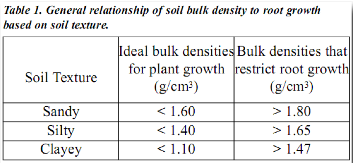 Bulk Density (ρb) : The mass of the solid relative o the volume of the soil: