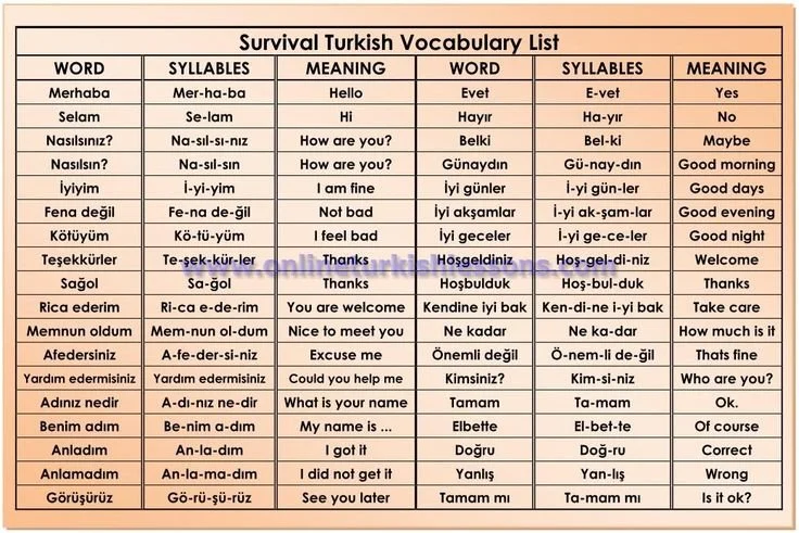 6, 7, 8, 9, 10: altı, yedi, sekiz, dokuz, on